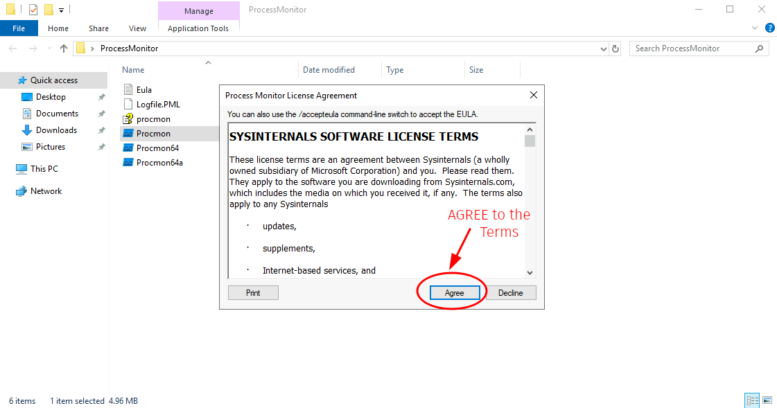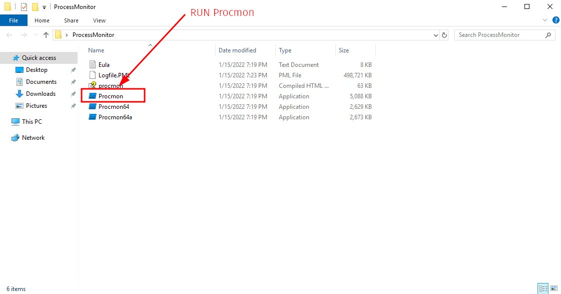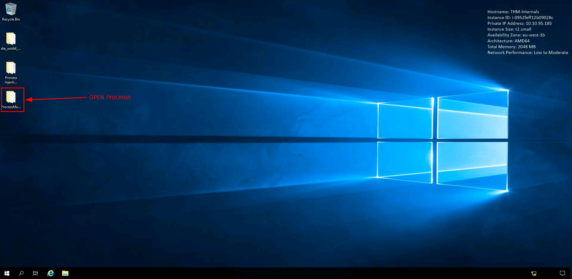 First, we launch Procmon, by opening the "ProcessMonitor" Folder on our Desktop