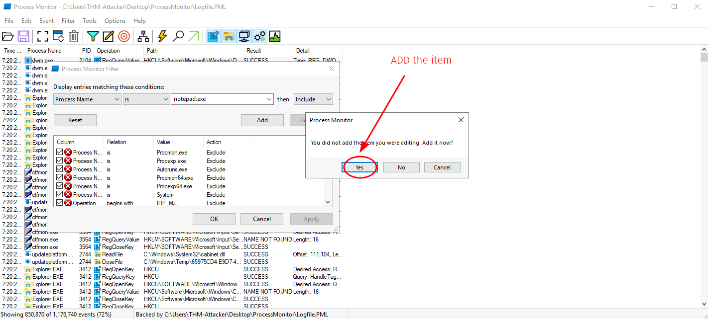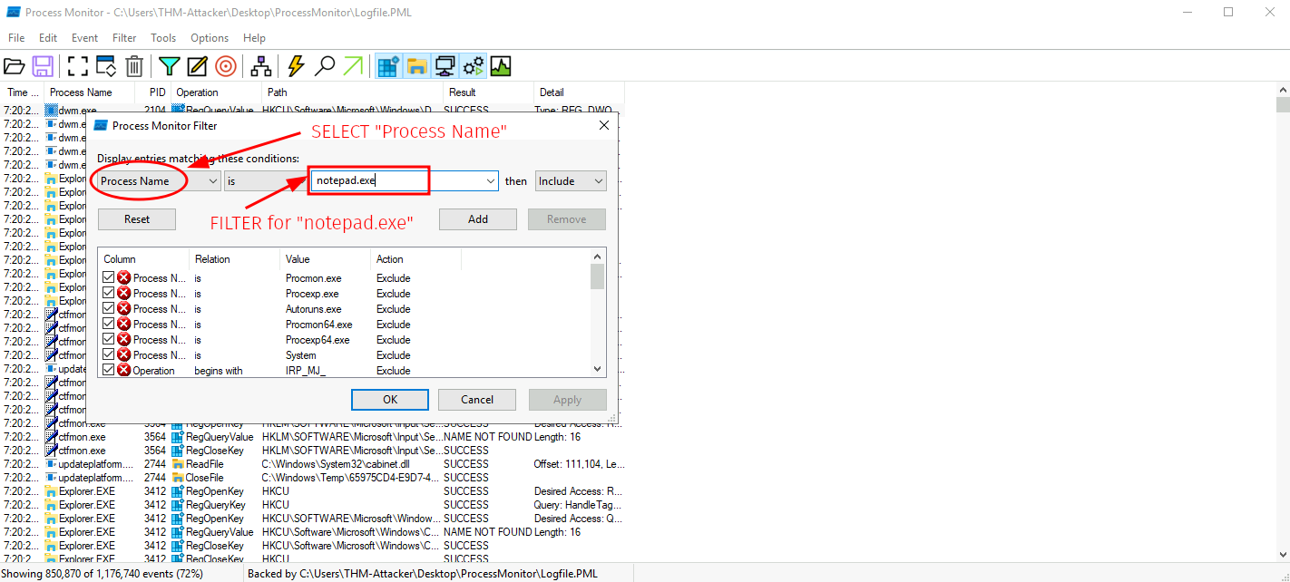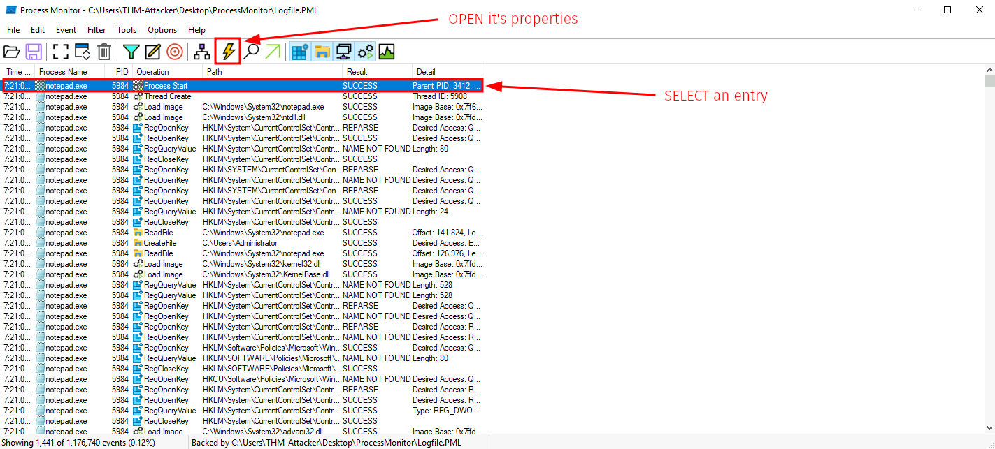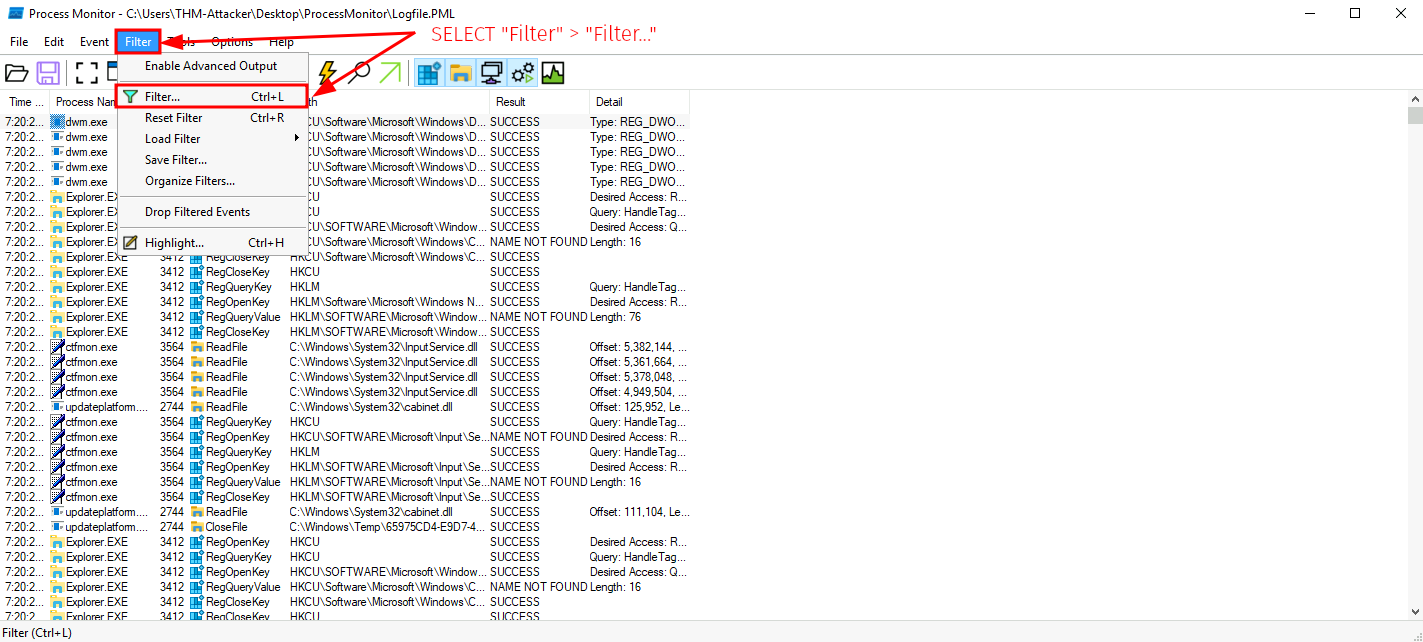 Since we have the "Logfile.PML" already opened in Procmon, we just continue along where we left off in our previous task.