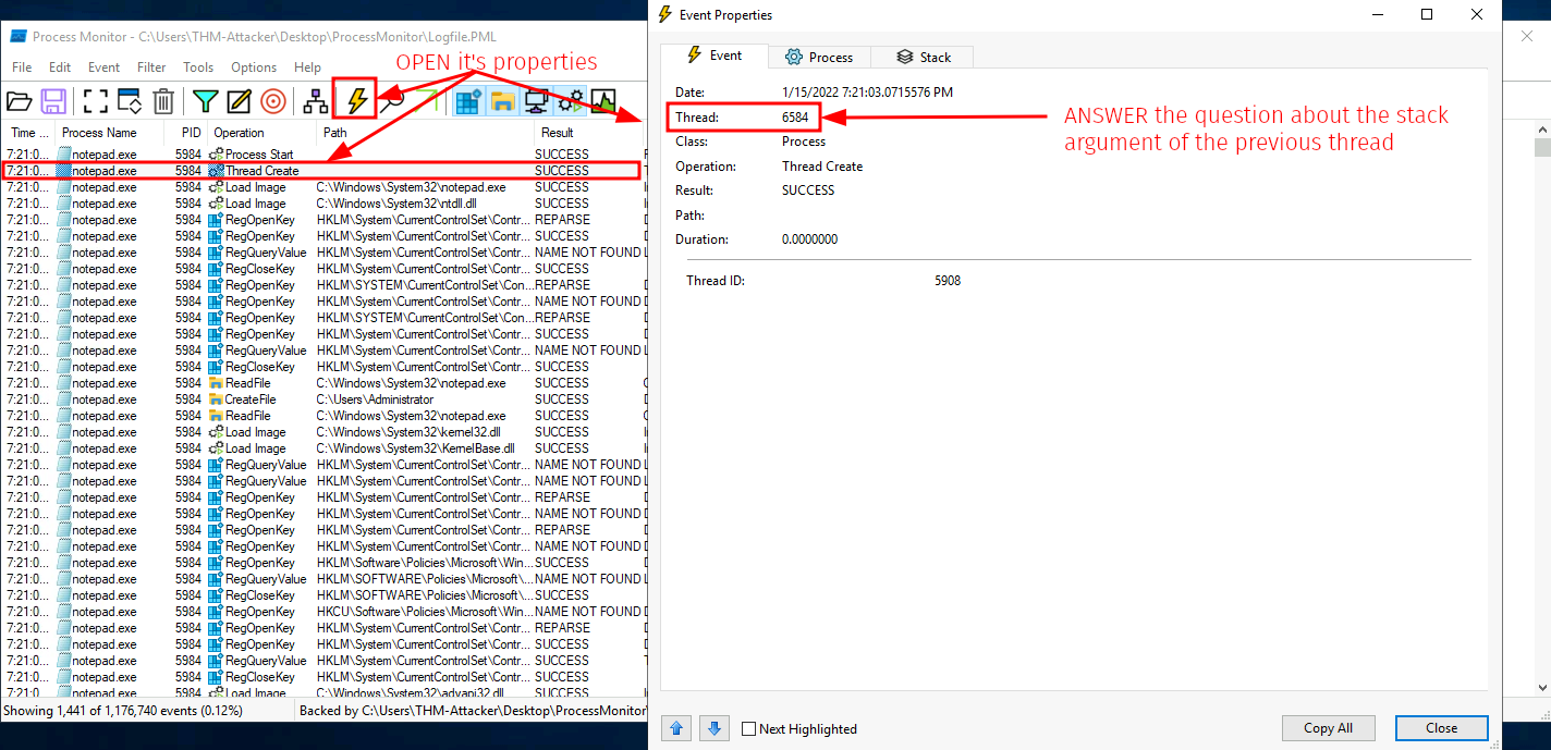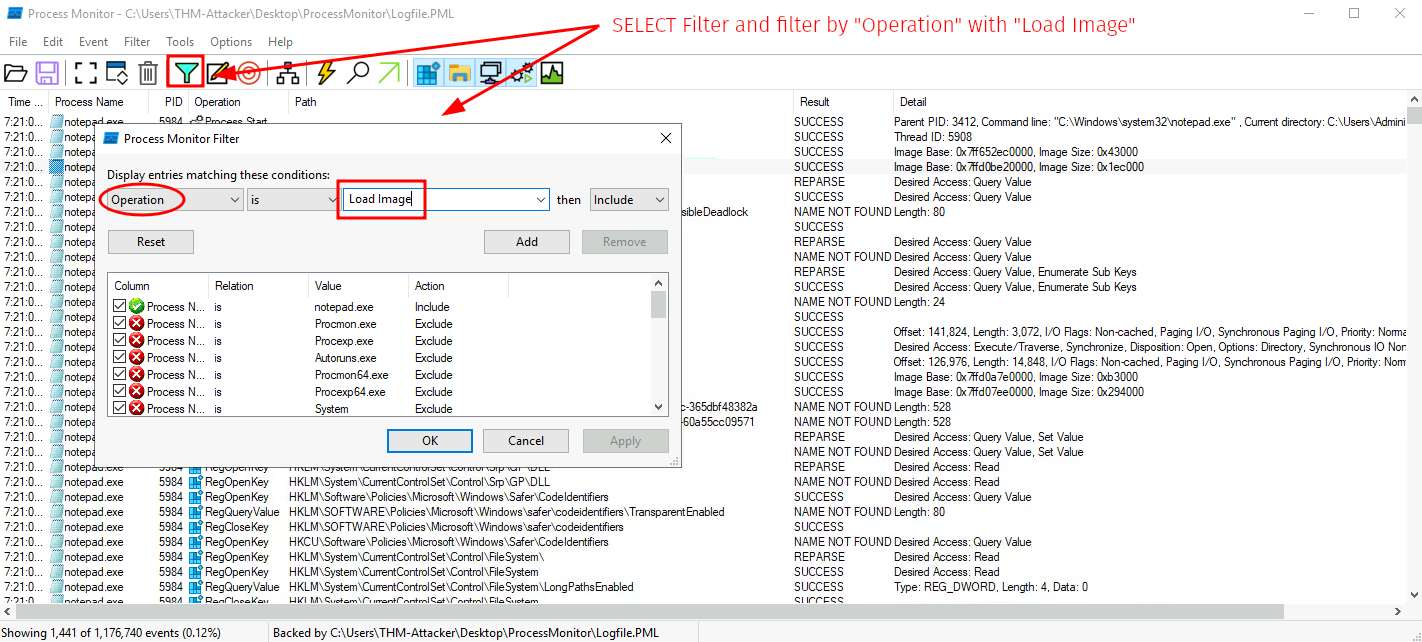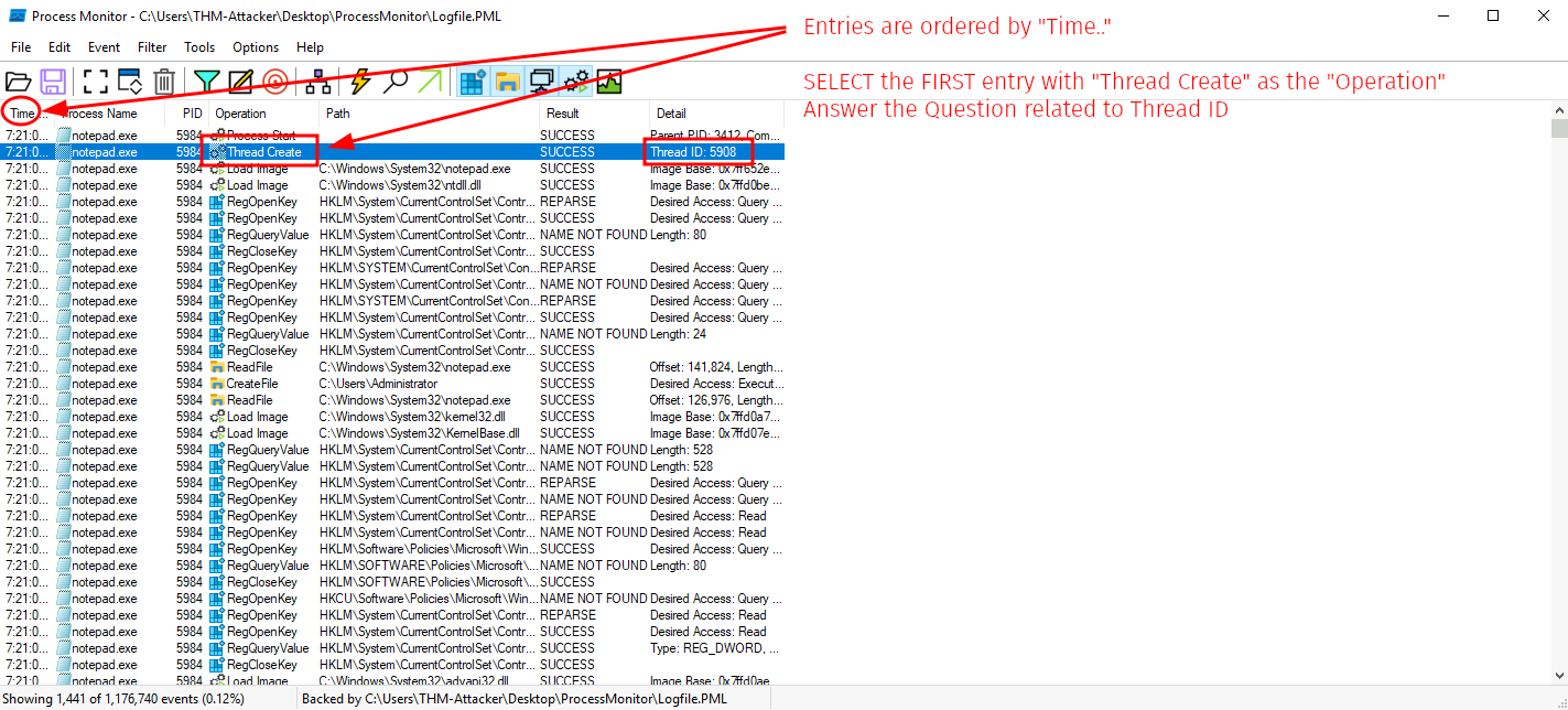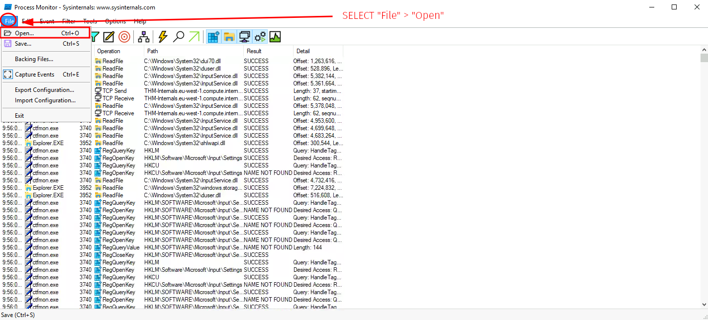 Since we have the "Logfile.PML" already opened in Procmon, we just continue along where we left off in our previous task.