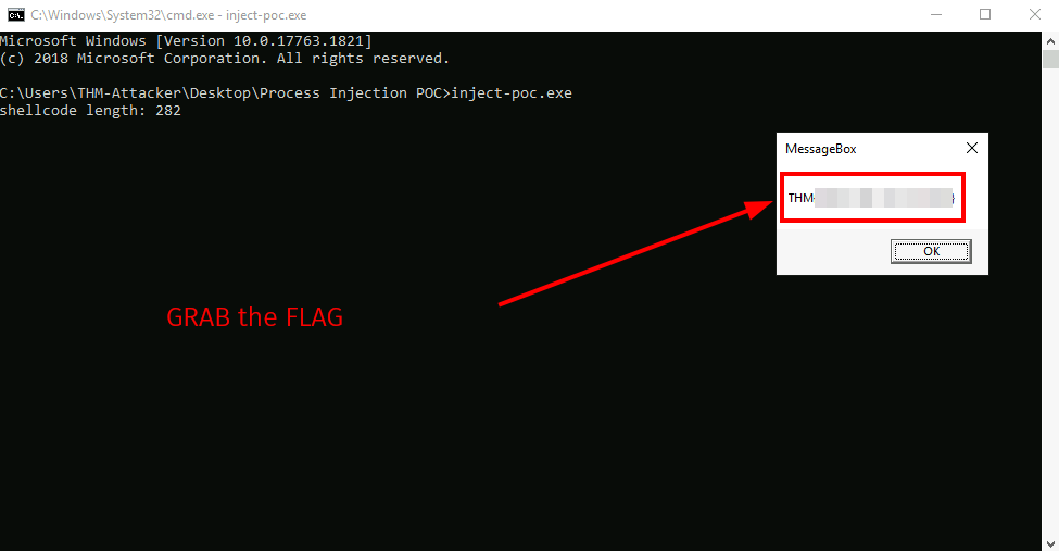 Question 1: Open a command prompt and execute the provided file: "inject-poc.exe" and answer the questions below.