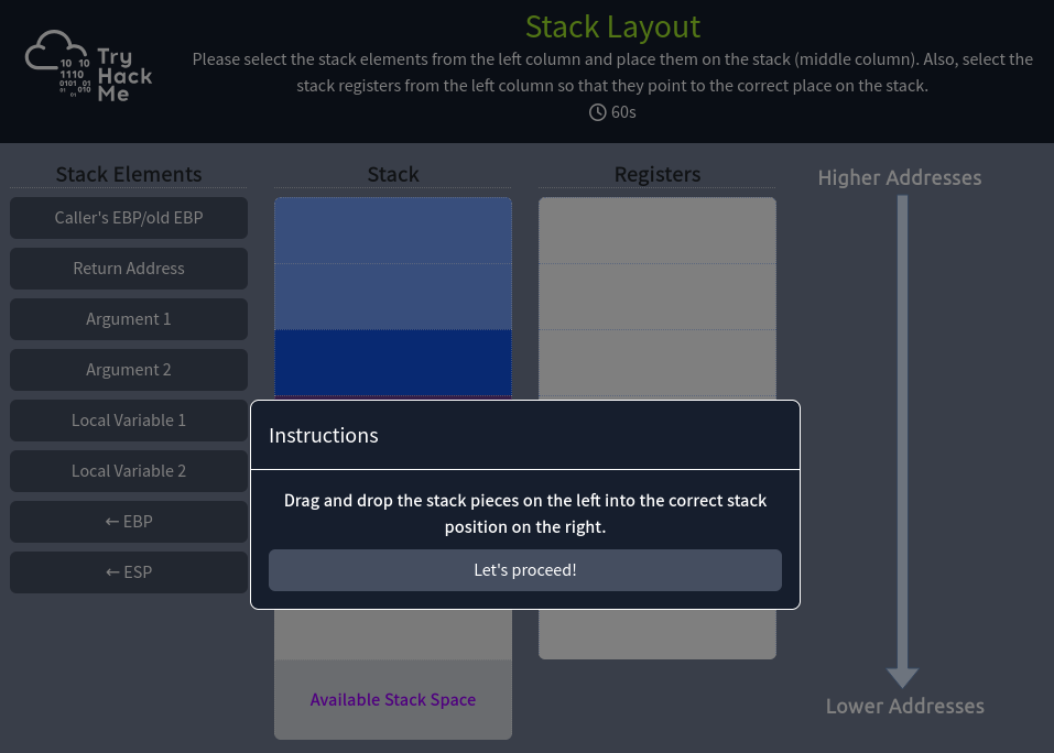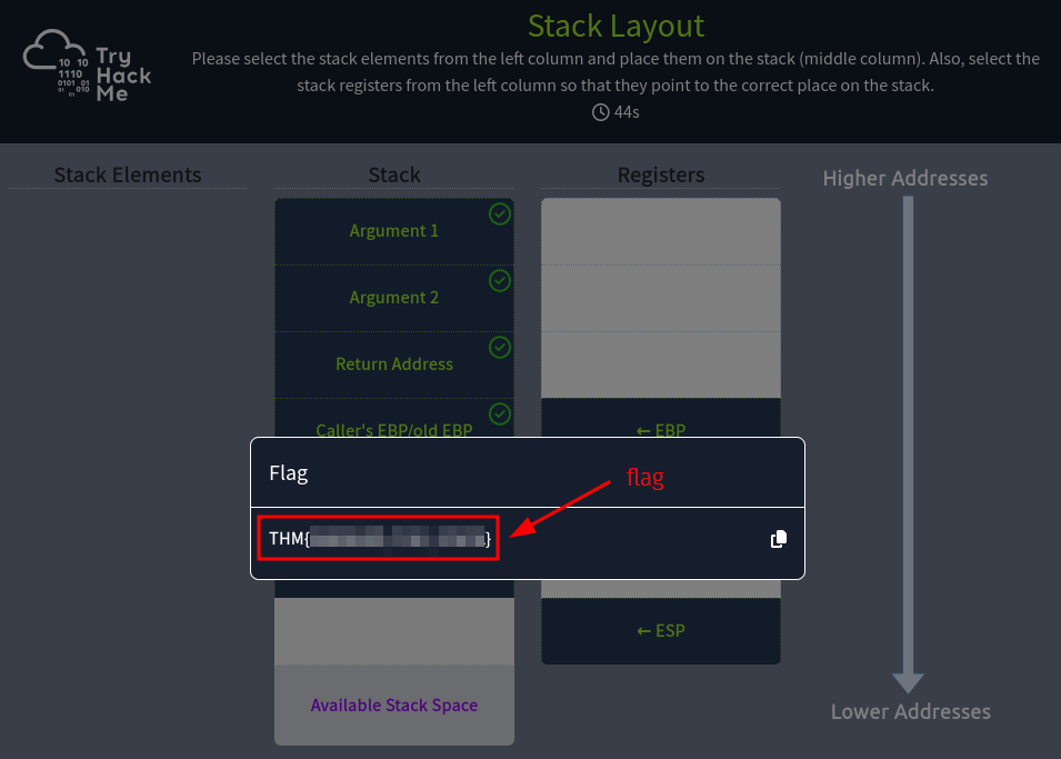 It then delves deeper into registers, explaining their types (Instruction Pointer, General-Purpose Registers, Status Flag Registers), and how they are used to store data temporarily while it is being processed by the CPU. Additionally, the room covers program memory layout, highlighting the importance of the stack in malware analysis, and explains common malware techniques such as stack buffer overflow attacks.